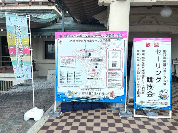 バトミントン競技会/セーリング競技会 2025年09月28日 9月28日、わたSHIGA輝く国スポ(第79回 国民スポーツ大会)バトミントン競技会をダイハツアリーナで観覧しました。打球の速さとネット際の繊細なプレーに魅了されました。 午後からはセーリング競技会を柳が崎特設会場にて観覧しました。案内看板に記載されたピクトグラムが充実しており、とても分かりやすいと感じました。 各会場で競技にちなんだおおつ光ルくん、キャッフィー、チャッフィーのイラストを見るのが楽しみになっています(^^)