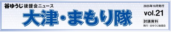 「大津・まもり隊」VOL.21 2025年10月29日 谷ゆうじ後援会ニュース「大津・まもり隊」VOL.21を発行させていただきました。 リンク:谷ゆうじ後援会ニュース「大津・まもり隊」VOL.21 PDF