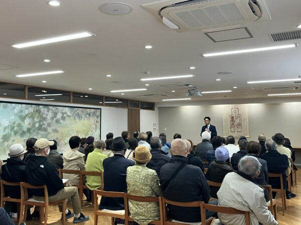 12月7日、谷ゆうじ後援会の主催にて、恒例となっている交流(研修)事業「まちなみ・まもり隊」を開催いただきました。ご参加くださりました会員の皆様、誠にありがとうございました。市政報告会では「びわこ東海道屋外広告物ガイドライン」ならびに「大津市景観計画ガイドライン・公共サイン編」について、また、所属する公共施設対策特別委員会で調査を行っている庁舎整備についてお話しをさせていただきました。