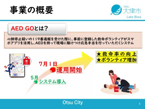 リンク:大津市HP 大津市消防局 スマホアプリ「AED GO」救命ボランティア登録者を募集します(令和7年7月1日運用開始)